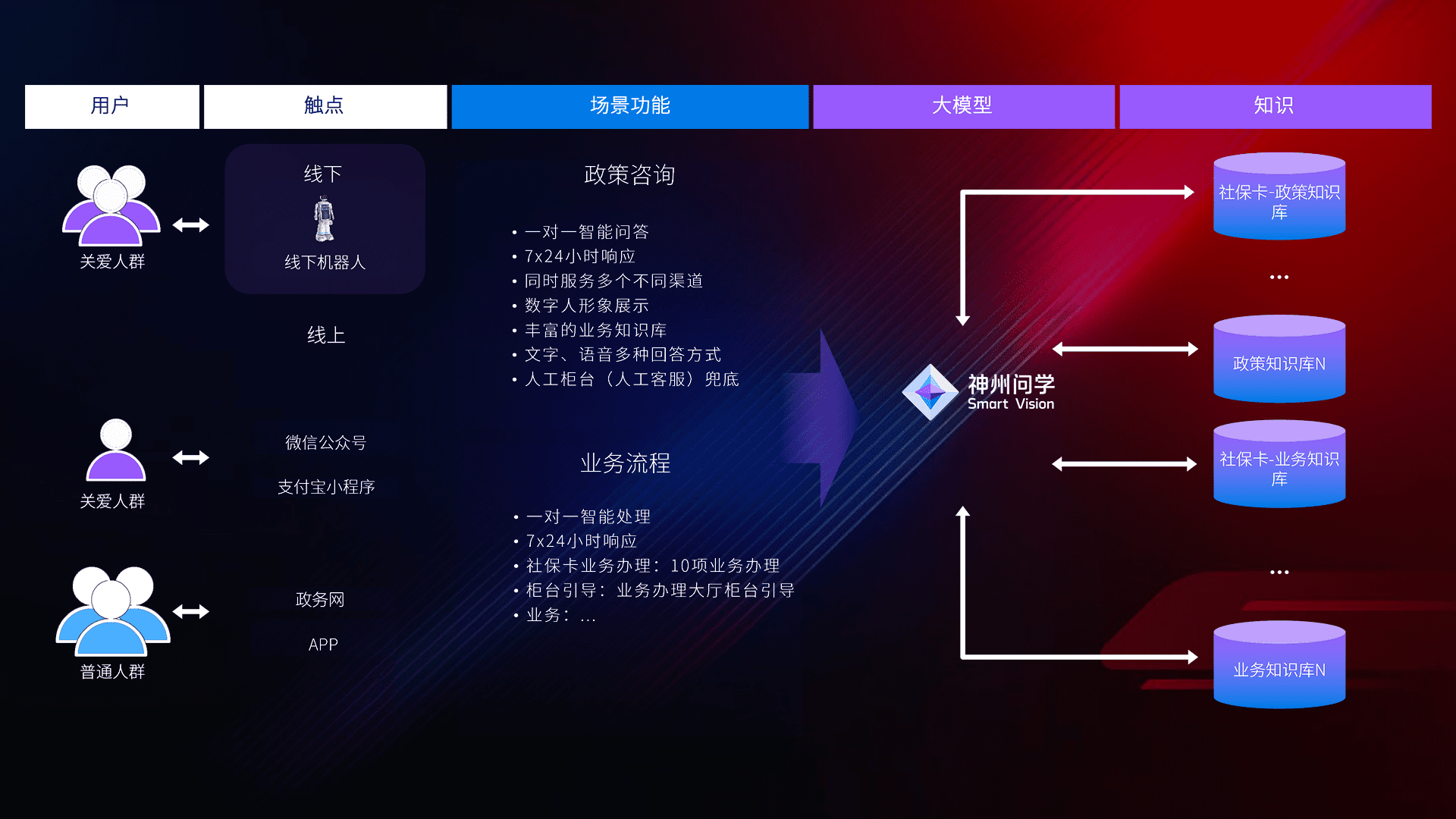 • 线上线下全覆盖:线上提供微信公众号、、、支付宝小程序、、、政务网、、、app多种渠道,,,,与线下机器人形成完整服务体系。。。。